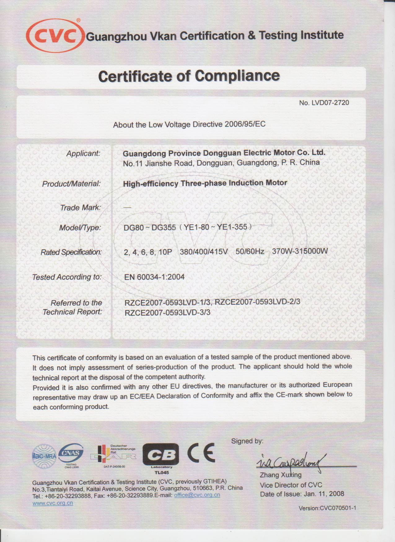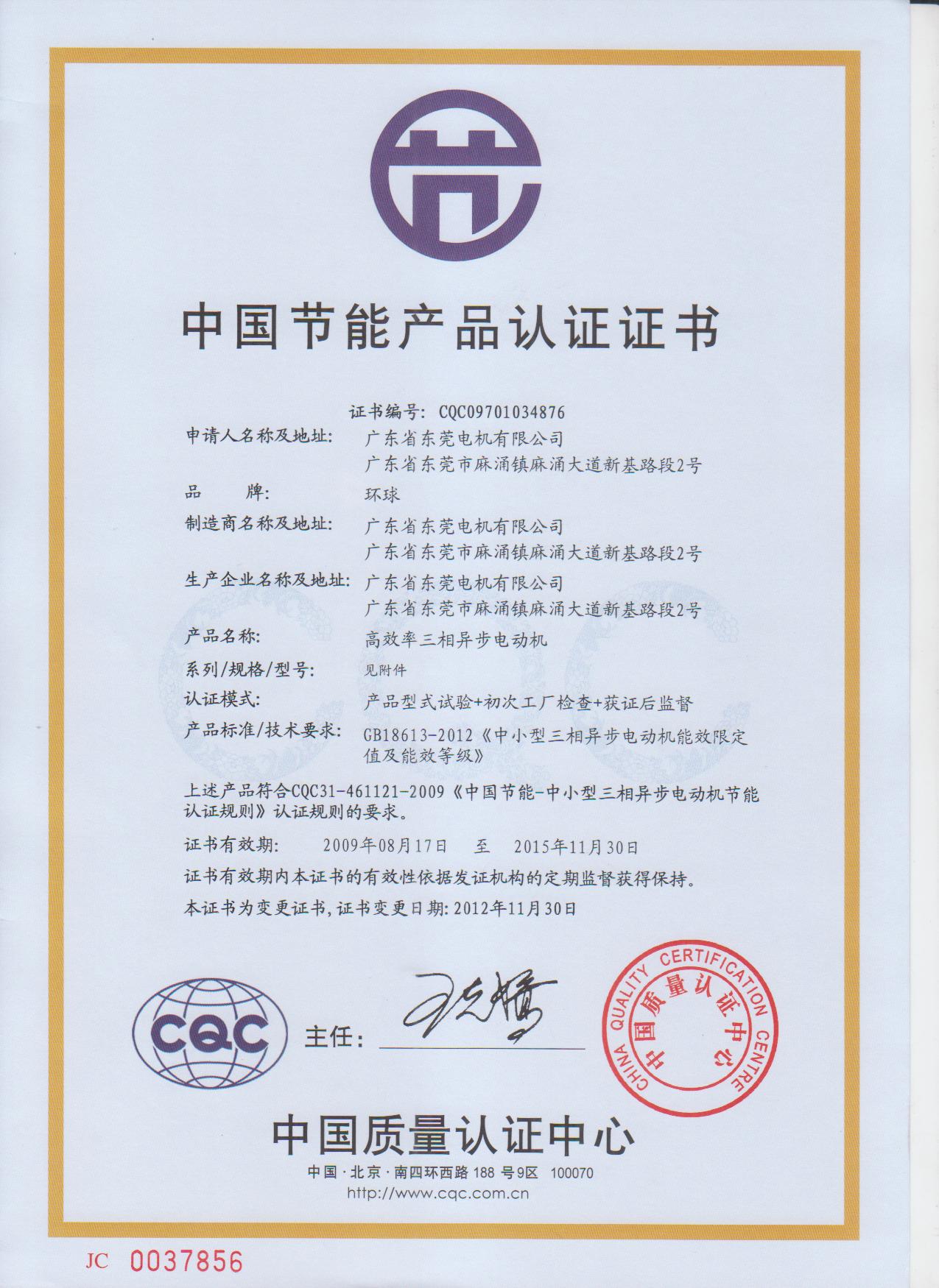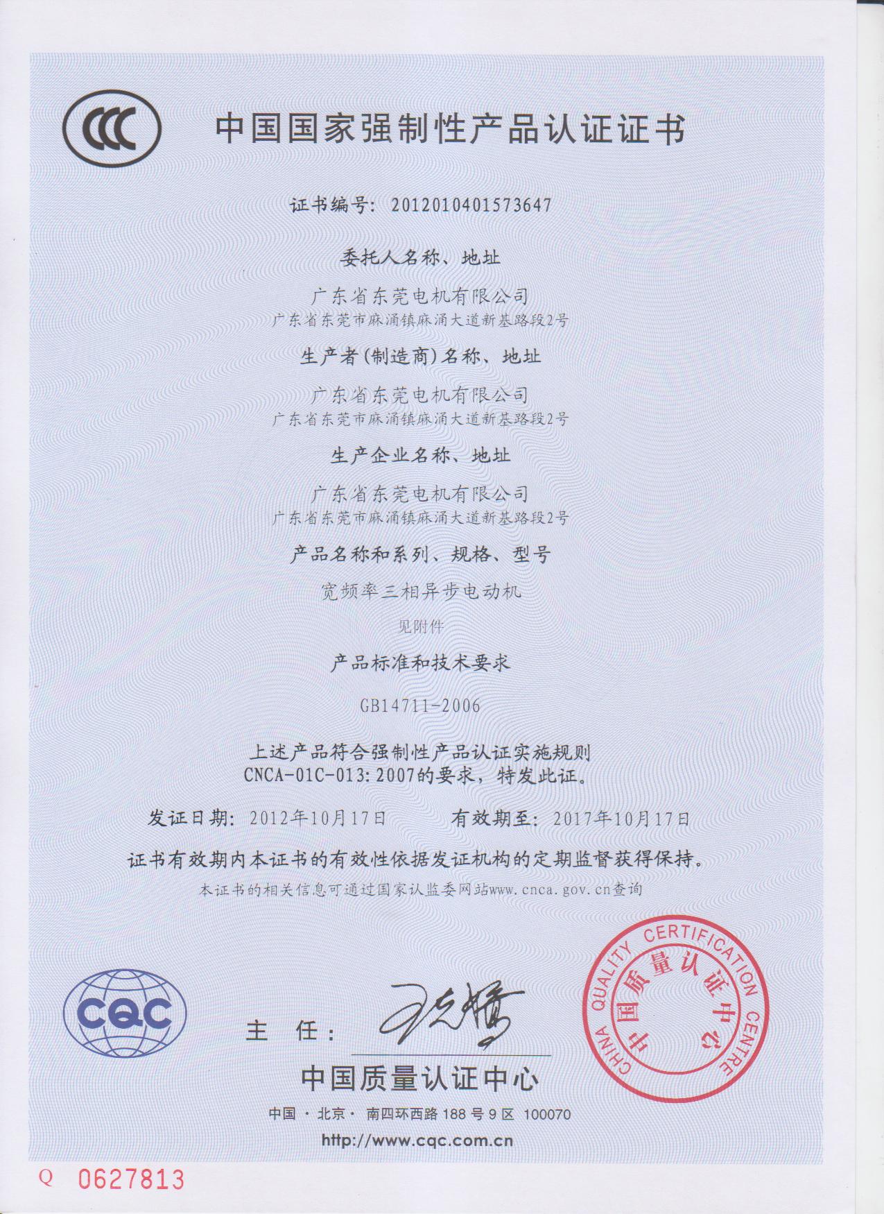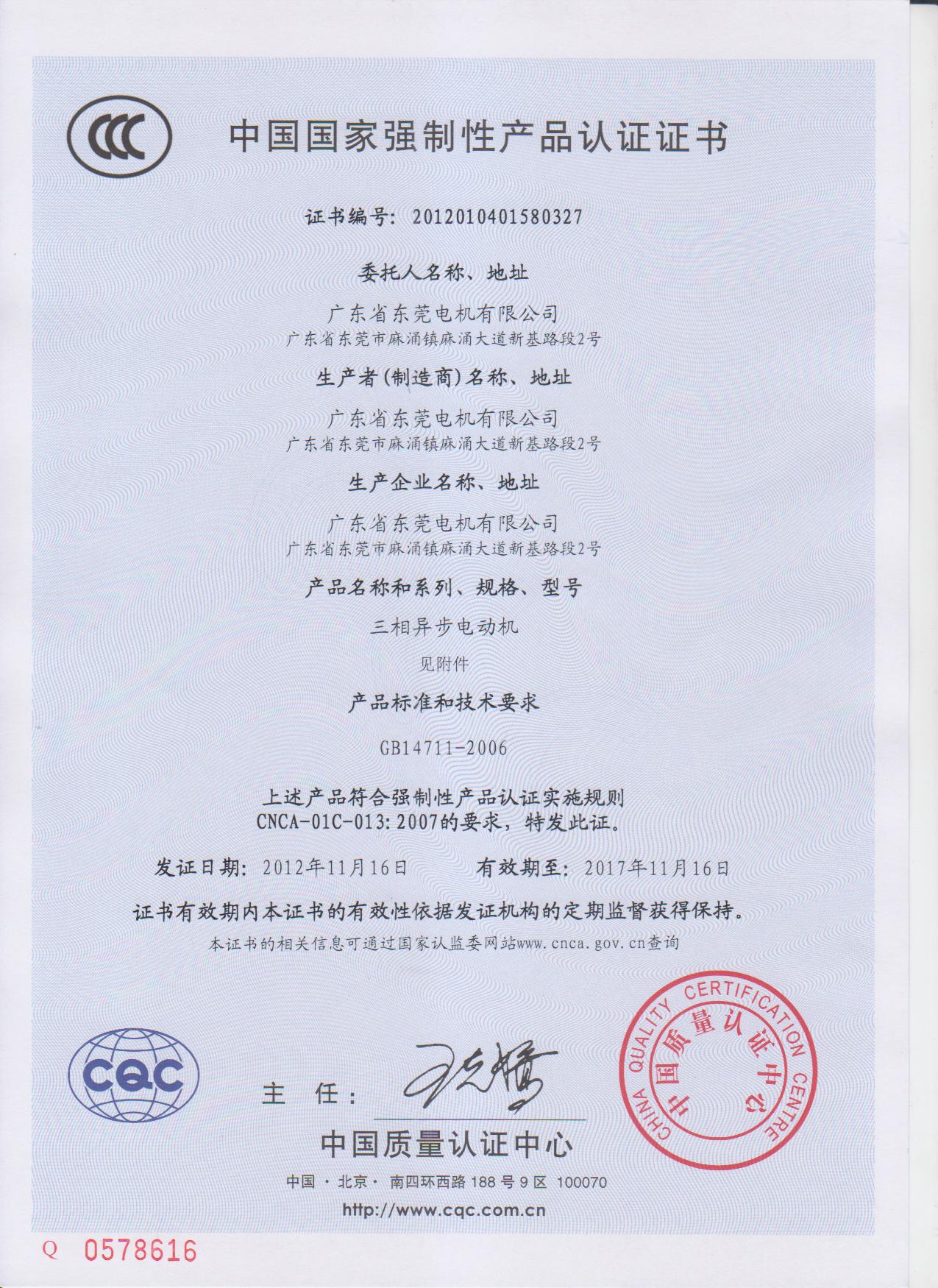 YE2系列三相異步電動機CQC證書
