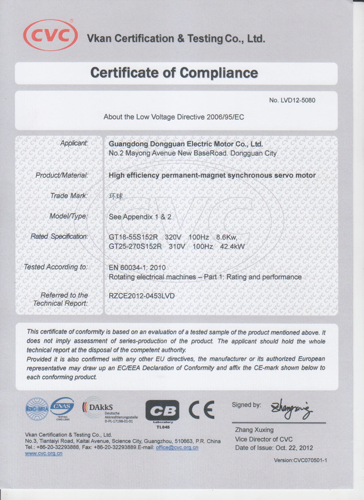 GT系列電機CE證書